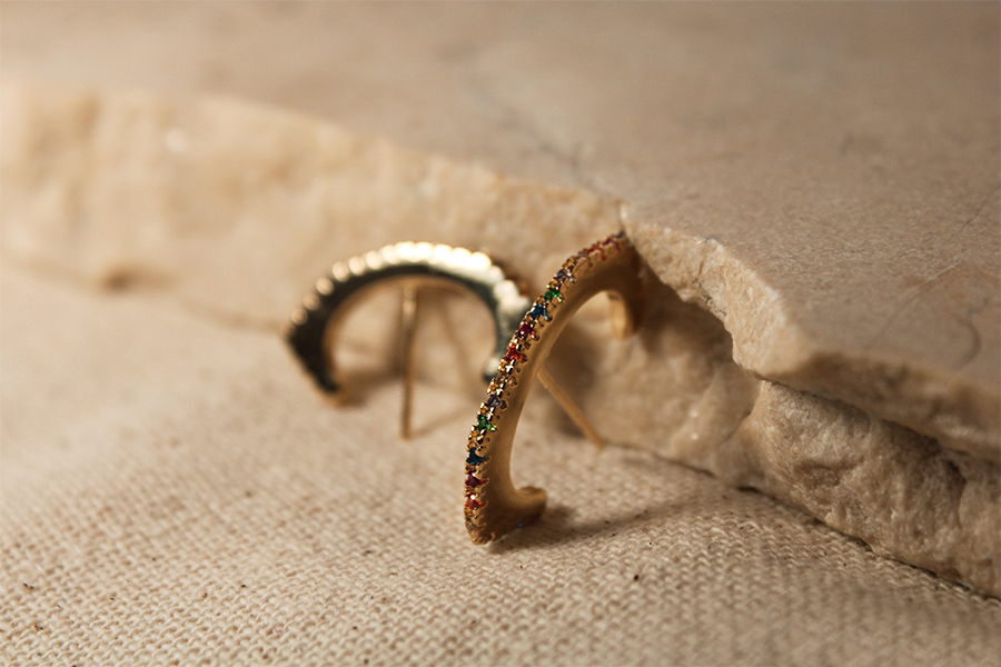 BRINCO BANHADO EM OURO 9mm LARGURA COM ZIRCÔNIAS BRANCAS OU COLORIDAS