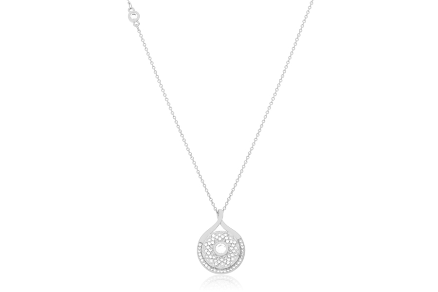 GARGANTILHA BANHADA EM RÓDIO BRANCO, RABO DE RATO 1mm, 40cm COMPRIMENTO, EXTENSOR 5cm COMPRIMENTO E PINGENTE 10x6mm, COLEÇÃO ATENA