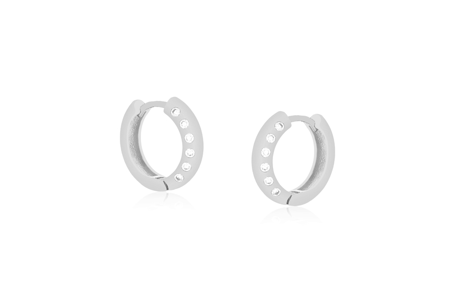BRINCO BANHADO EM RÓDIO BRANCO, PONTO DE LUZ 5mm, CRAVAÇÃO INGLESA