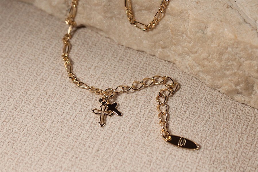TORNOZELEIRA BANHADO EM PRATA LEVE, ELO CARTIER 3,10x1,30mm, 21cm COMPRIMENTO COM OLHO GREGO, PONTO DE LUZ, CORAÇÃO E EXTENSOR 5cm COMPRIMENTO