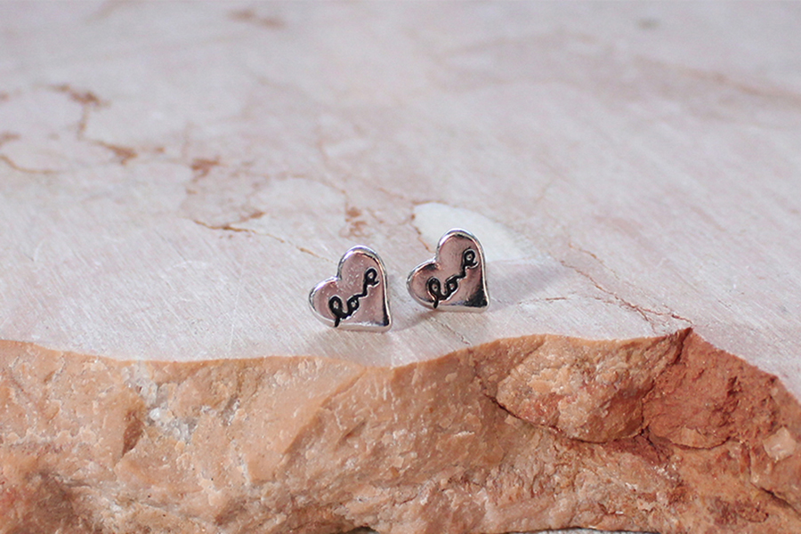 BRINCO BANHADO EM OURO, CORAÇÃO 5mm LARGURA COM TARRAXA BABY