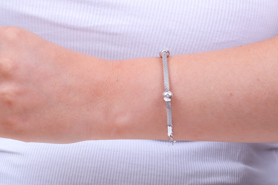 PULSEIRA BANHADA EM RÓDIO BRANCO, ELO PORTUGUÊS 5mm DIÂMETRO, 16cm COMPRIMENTO, EXTENSOR 5cm COMPRIMENTO E PONTO DE LUZ 8mm