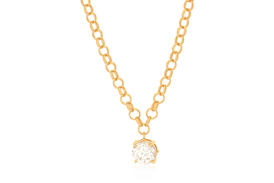 GARGANTILHA BANHADA EM OURO, ELO VENEZIANA 0,80mm, 42cm COMPRIMENTO E ZIRCONIA GOTA 10X7mm, PARA QUALQUER COR DE PEDRA