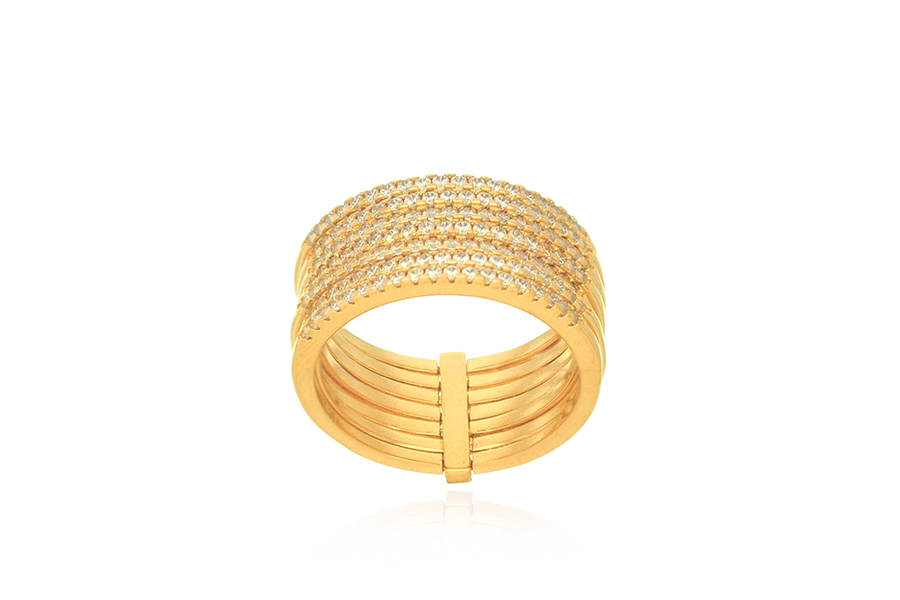 ANEL BANHADO EM OURO, APARADOR DUPLO, COM 2 FILEIRAS DE ZIRCÔNIAS CADA