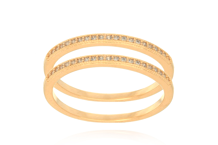 ANEL BANHADO EM OURO, APARADOR DUPLO COM 2 FILEIRAS DE ZIRCÔNIAS CADA
