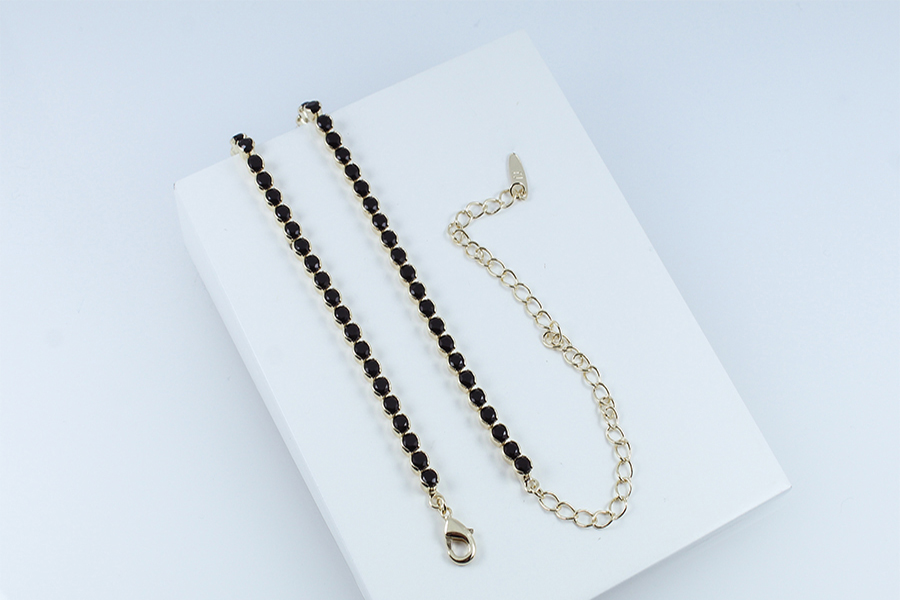 GARGANTILHA BANHADA EM OURO, GRAVATA, ELO 1,90mm LARGURA, 44cm COMPRIMENTO E ZIRCÔNIAS GOTAS
