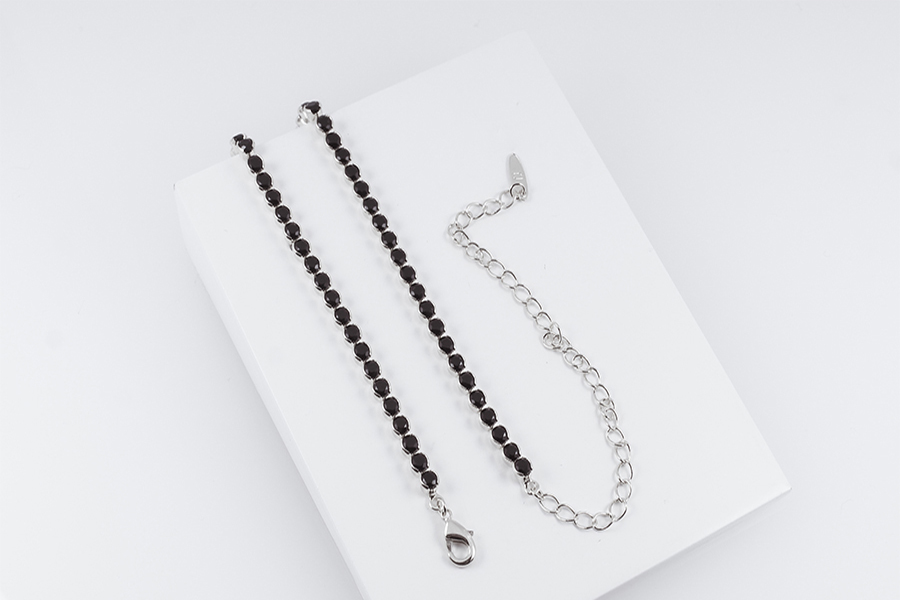 GARGANTILHA BANHADA EM RÓDIO BRANCO, RABO DE RATO 1mm, 40cm COMPRIMENTO, EXTENSOR 5cm COMPRIMENTO E PINGENTE 10x6mm, COLEÇÃO ATENA