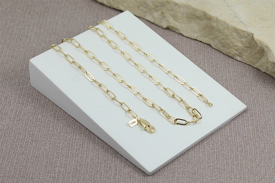 CORRENTE BANHADA EM OURO, ELO CORDA 3mm, 45cm COMPRIMENTO, EXTENSOR 5cm COMPRIMENTO E PESO 12,20g