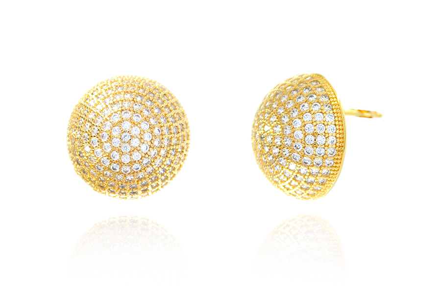 BRINCO BANHADO EM OURO, 15mm ALTURA COM 21 ZIRCÔNIAS