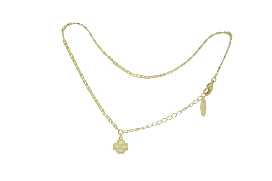 TORNOZELEIRA BANHADA EM OURO, ELO DUPLO CARTIER 4,20X1,90mm, 23cm COMPRIMENTO E CORAÇÃO 6,50mm LARGURA