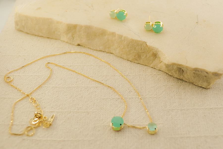 CONJUNTO BANHADO EM OURO, PONTO DE LUZ 4, 5 E 5,50mm
