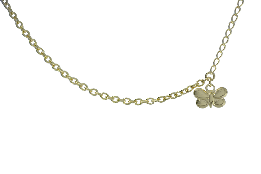 PULSEIRA INFANTIL BANHADA EM OURO, ELO CARTIER 4,20x2mm, 14cm COMPRIMENTO E BORBOLETA 7,50mm LARGURA