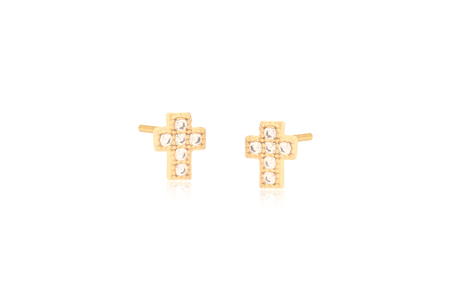BRINCO BANHADO EM OURO, ARGOLINHA E CRUZ 13mm COMPRIMENTO
