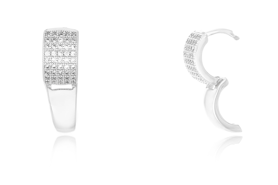 BRINCO EM PRATA, ARGOLINHA CLICK 12,50mm DIÂMETRO, ARO 1,70mm LARGURA, 1 FILEIRA DE ZIRCÔNIAS