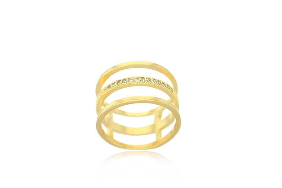 ANEL BANHADO EM OURO, APARADOR DUPLO COM 2 FILEIRAS DE ZIRCÔNIAS CADA