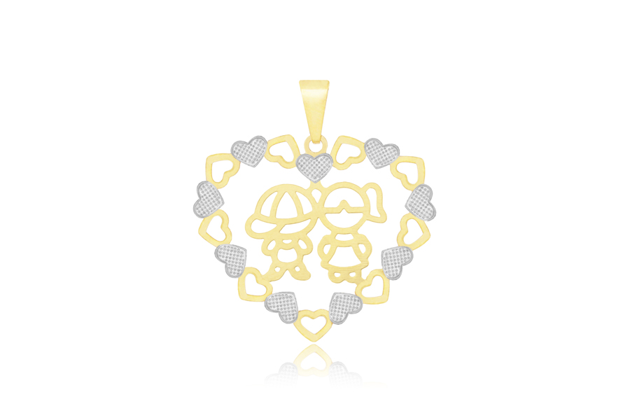 PINGENTE BANHADO EM OURO, CORAÇÃO 17mm LARGURA, COM 1 MENINO, COM OU SEM RESINA