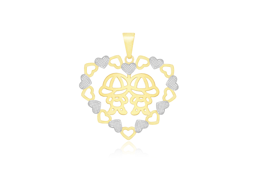 PINGENTE BANHADO EM OURO, CORAÇÃO 17mm LARGURA, COM 1 MENINO, COM OU SEM RESINA