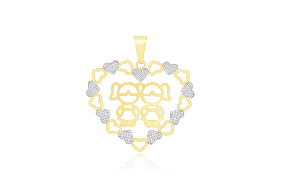 PINGENTE BANHADO EM OURO, CORAÇÃO 17mm LARGURA, COM 1 MENINO, COM OU SEM RESINA