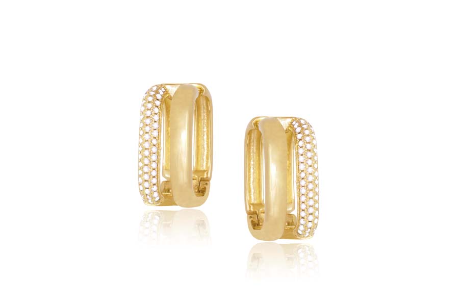 BRINCO BANHADO EM OURO, 15mm ALTURA COM 21 ZIRCÔNIAS