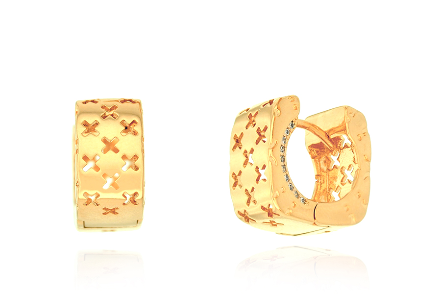 BRINCO BANHADO EM OURO, 15mm ALTURA COM 21 ZIRCÔNIAS