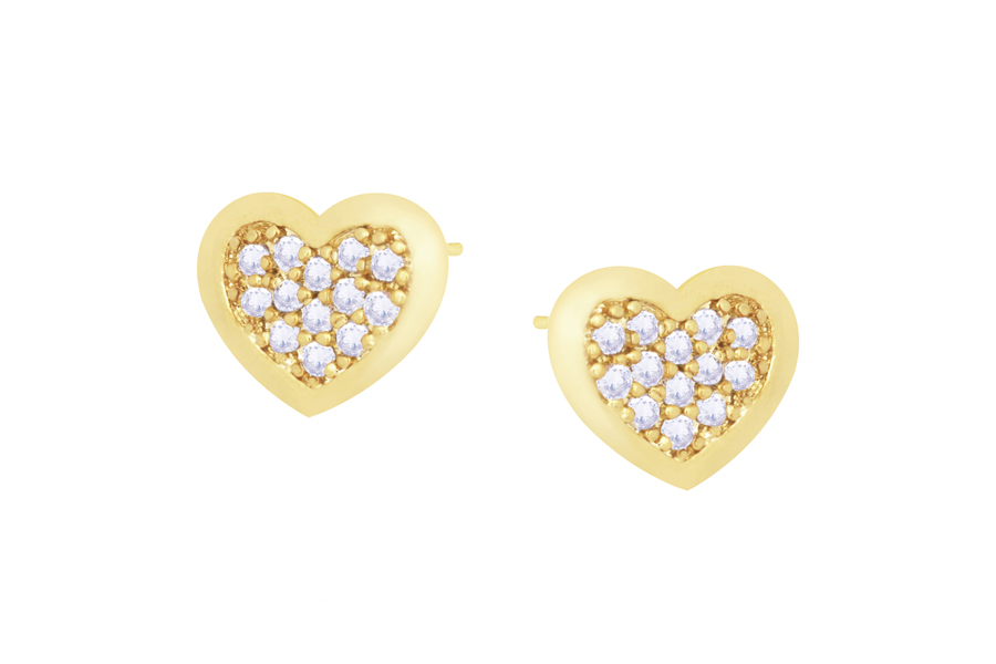 BRINCO EM PRATA 925, SOLITÁRIO CORAÇÃO COM ZIRCÔNIAS