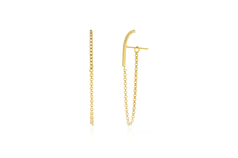 BRINCO BANHADO EM OURO, 15mm ALTURA COM 21 ZIRCÔNIAS
