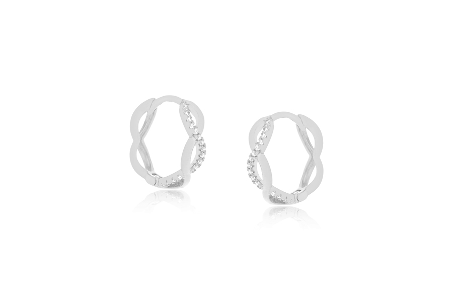 BRINCO BANHADO EM RÓDIO BRANCO, INFINITO 12mm COMPRIMENTO