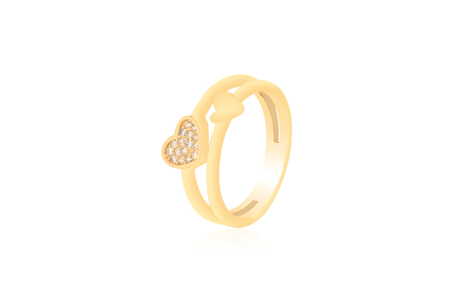 ANEL BANHADO EM OURO CORAÇÃO 7mm ALTURA E ZIRCÔNIAS BRANCAS OU COLORIDAS