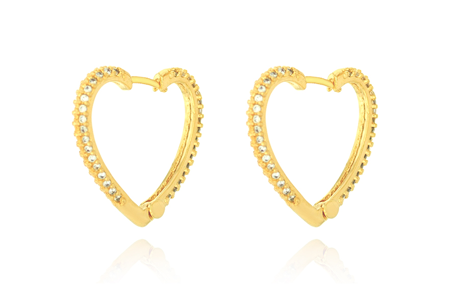 BRINCO BANHADO EM OURO, ARGOLA 38mm DIÂMETRO E CORAÇÃO