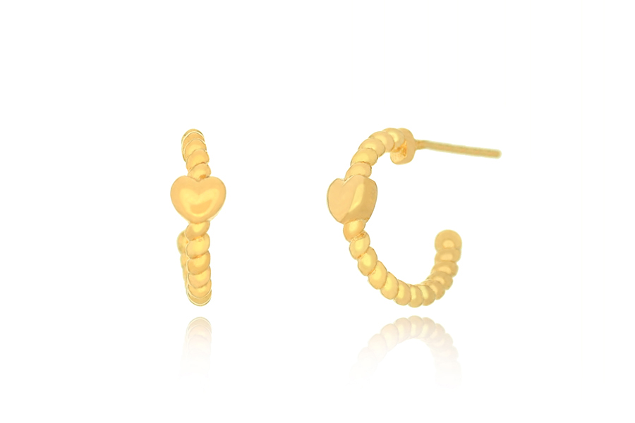 BRINCO BANHADO EM OURO, CORAÇÃO 8,60mm LARGURA