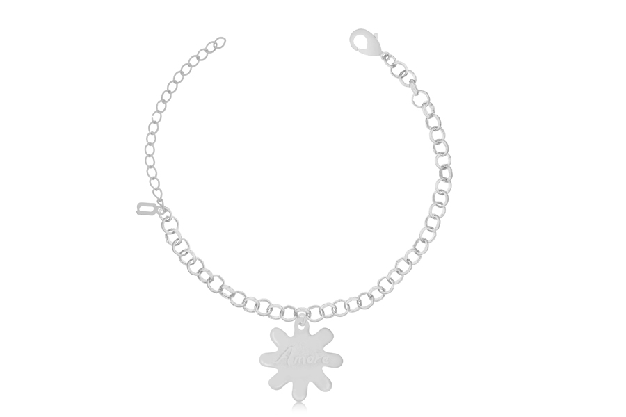 PULSEIRA BANHADA EM RÓDIO BRANCO, ELO PORTUGUÊS 3mm, 16cm COMPRIMENTO E PINGENTE ''FOREVER AND ALWAYS'' 17,50mm DIÂMETRO