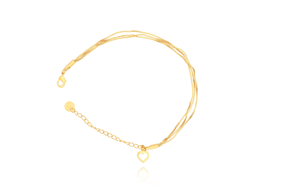 PULSEIRA BANHADA EM OURO, ELO 2,30mm LARGURA, 16cm COMPRIMENTO, EXTENSOR 5cm COMPRIMENTO E CORAÇÃO 7mm LARGURA, PARA QUALQUER COR
