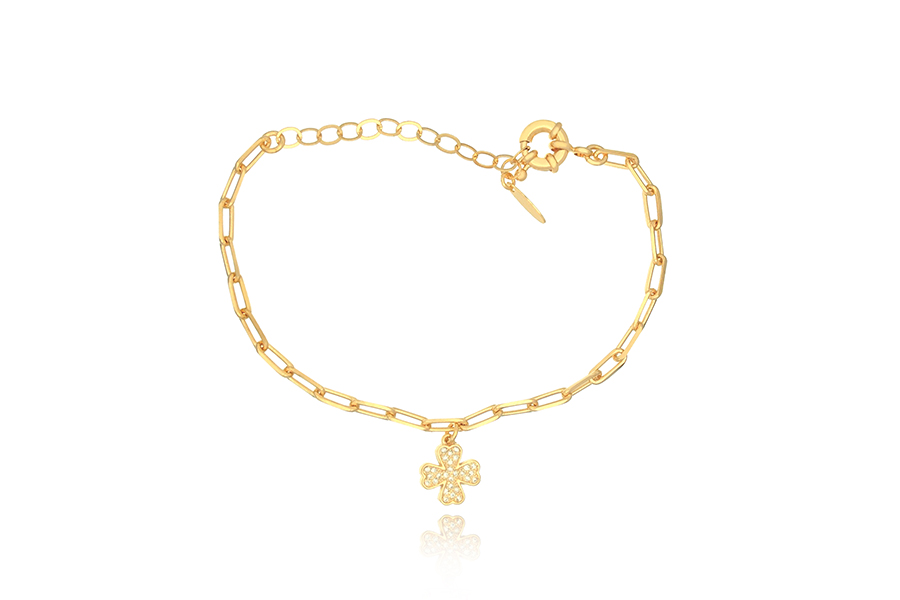 PULSEIRA BANHADA EM OURO, CORRENTE ELO PORTUGUÊS 2,50mm, 17cm COMPRIMENTO, EXTENSOR 5cm COMPRIMENTO E PESO 2,20g