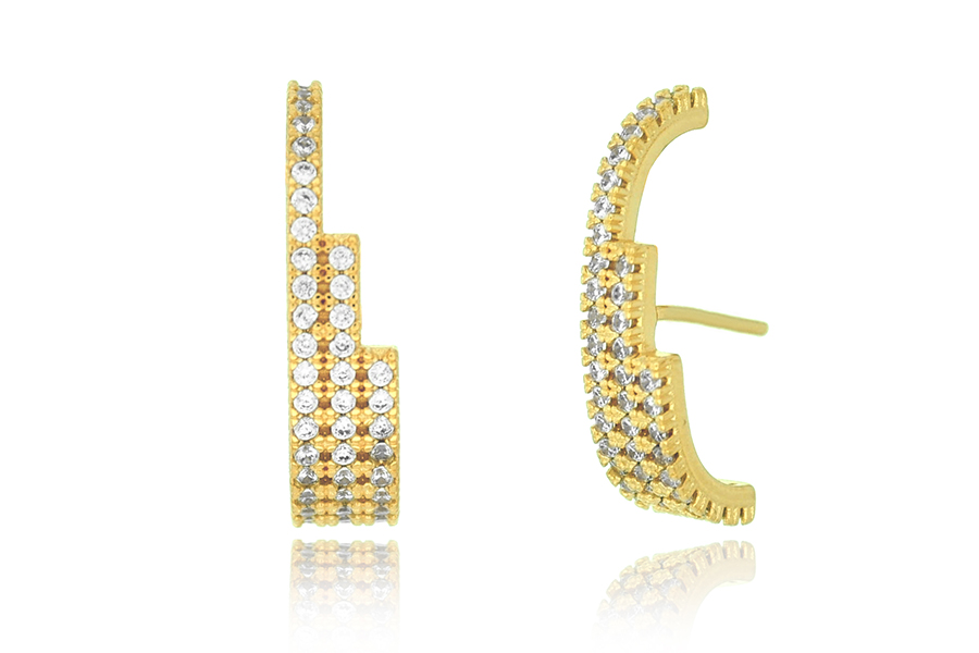BRINCO BANHADO EM OURO, 15mm ALTURA COM 21 ZIRCÔNIAS