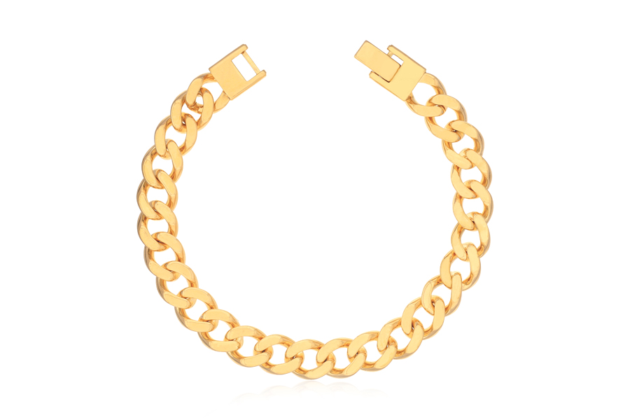 PULSEIRA BANHADA EM OURO, ELO 5mm LARGURA, 18cm COMPRIMENTO E MEDALHA PAI NOSSO 26mm DIÂMETRO