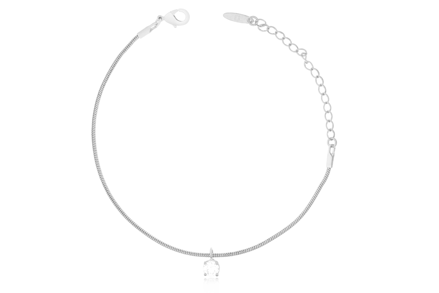 PULSEIRA BANHADA EM RÓDIO BRANCO, ELO PORTUGUÊS 5mm DIÂMETRO, 16cm COMPRIMENTO, EXTENSOR 5cm COMPRIMENTO E PONTO DE LUZ 8mm