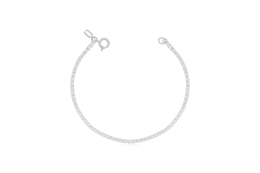 PULSEIRA BANHADA EM RÓDIO BRANCO, ELO PORTUGUÊS 3mm, 16cm COMPRIMENTO E PINGENTE ''FOREVER AND ALWAYS'' 17,50mm DIÂMETRO