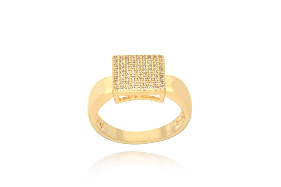 ANEL BANHADO EM OURO, ALIANÇA COM ZIRCÔNIAS BRANCAS OU PRETAS