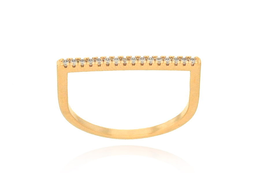 ANEL BANHADO EM OURO, APARADOR DUPLO COM 2 FILEIRAS DE ZIRCÔNIAS CADA