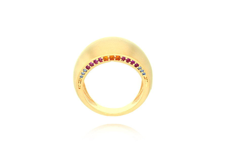 ANEL BANHADO EM OURO, TORCIDO, COM RESINA COLORIDA
