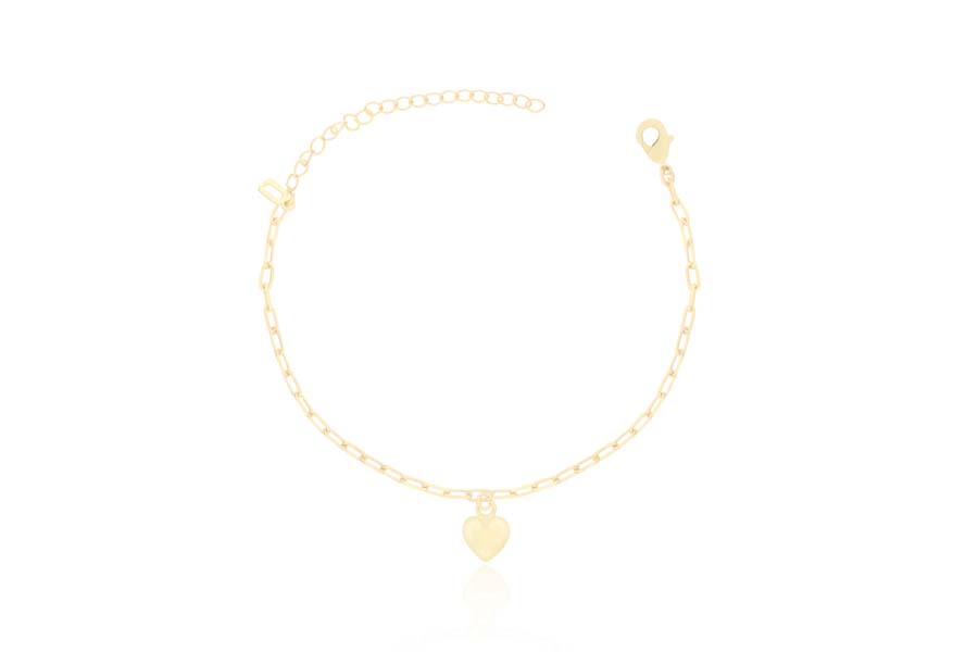 PULSEIRA INFANTIL BANHADA EM OURO, ELO 1,10mm COM BOLINHA, 14cm COMPRIMENTO, PONTO DE LUZ 3,50mm, AMOR DA TITIA 10mm COM CORAÇÃO