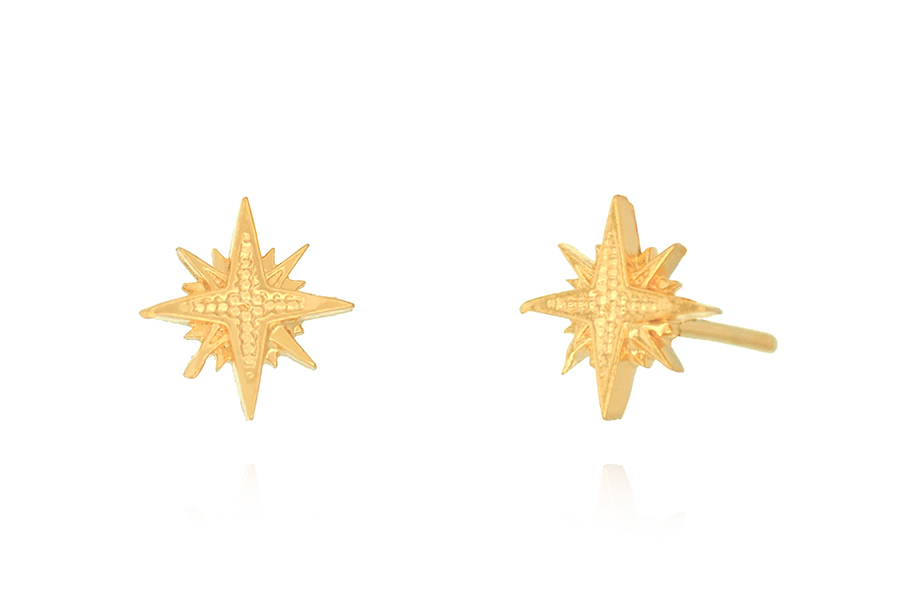 BRINCO BANHADO EM OURO, ESTRELA 4mm LARGURA, COM TARRAXA BABY