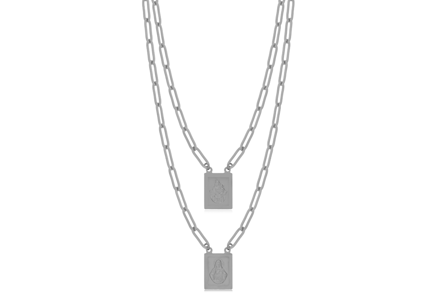 ESCAPULÁRIO EM PRATA, SÃO JORGE VAZADO, RETANGULAR 7mm LARGURA, ELO GRUMET, 60cm COMPRIMENTO