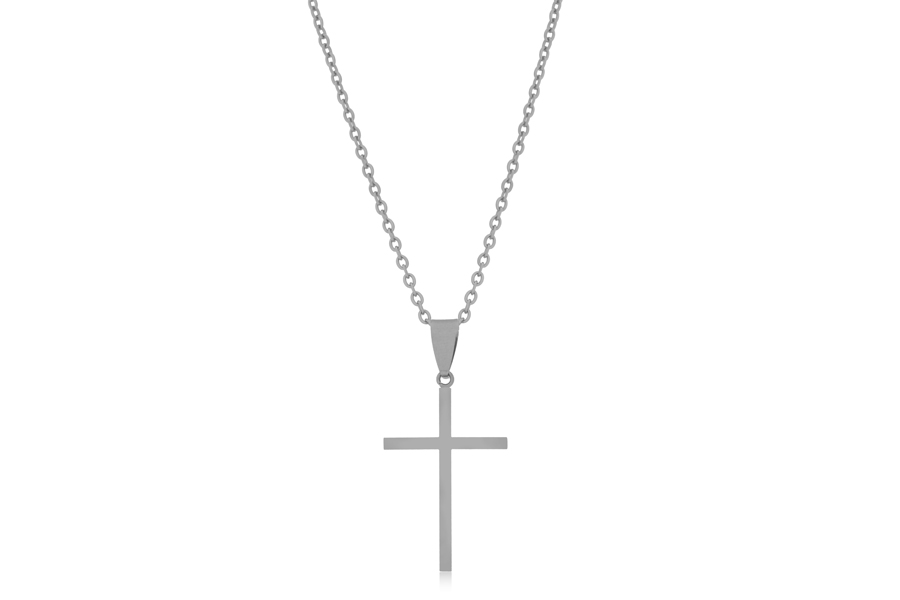 GARGANTILHA BANHADA EM PRATA LEVE, VENEZIANA 0,80mm, 40cm COMPRIMENTO, EXTENSOR 5cm COMPRIMENTO E CRUZ 3,60X2,20cm