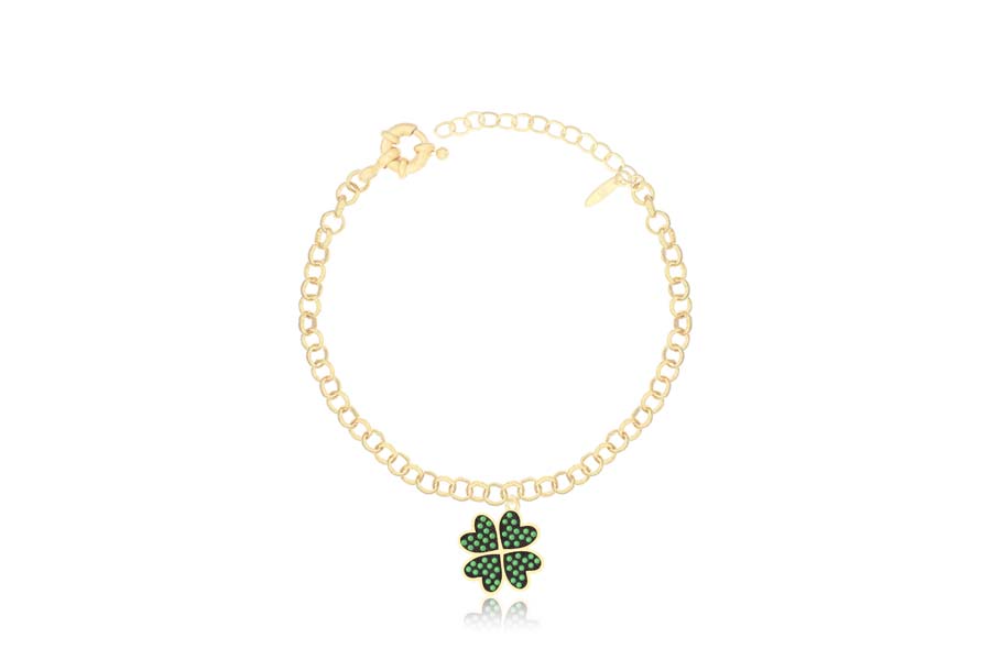 PULSEIRA BANHADA EM OURO, ELO PORTUGUÊS 3mm, ELO CORAÇÃO 4,20mm LARGURA, PINGENTE CORAÇÃO 11mm LARGURA COM MENINA