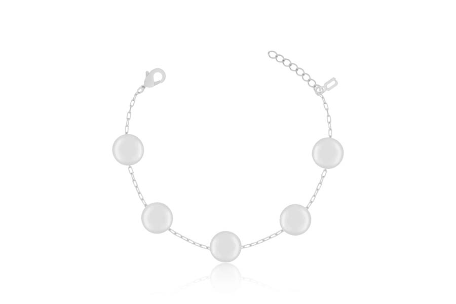 PULSEIRA BANHADA EM RÓDIO BRANCO, ELO PORTUGUÊS 5mm DIÂMETRO, 16cm COMPRIMENTO, EXTENSOR 5cm COMPRIMENTO E PONTO DE LUZ 8mm