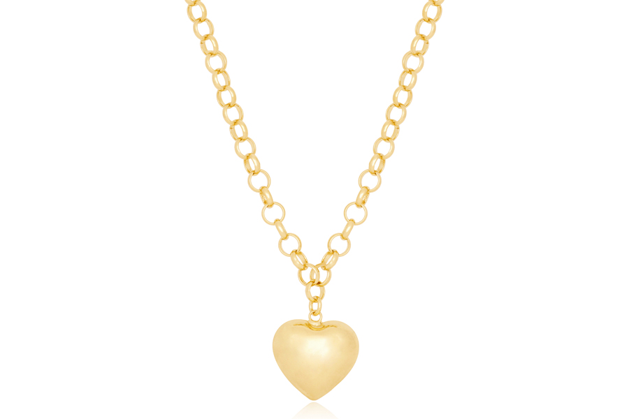 GARGANTILHA BANHADA EM OURO, ELO RABO DE RATO 1mm, 40cm COMPRIMENTO, EXTENSOR 5cm COMPRIMENTO E CORAÇÃO 27mm LARGURA