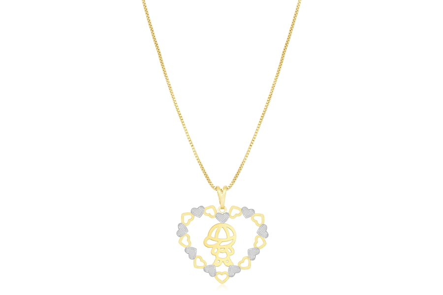 GARGANTILHA BANHADA EM OURO, ELO RABO DE RATO 1mm, 40cm COMPRIMENTO, EXTENSOR 5cm COMPRIMENTO E CORAÇÃO 27mm LARGURA