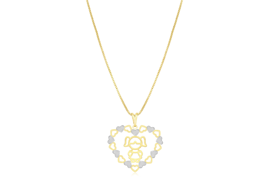 GARGANTILHA BANHADA EM OURO, 2,40mm ESPESSURA, 40cm DE COMPRIMENTO E CORAÇÃO 14mm LARGURA E 12mm ALTURA