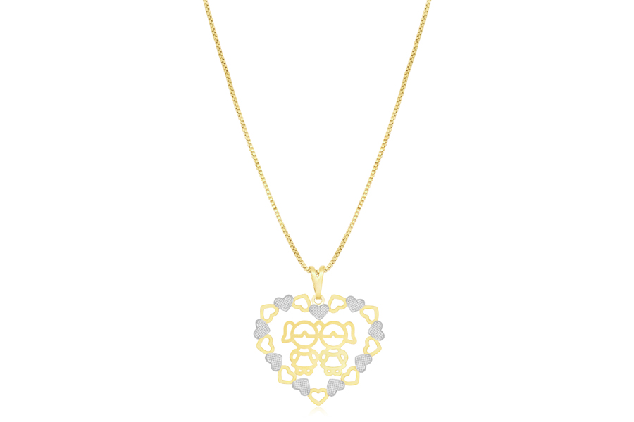 GARGANTILHA BANHADA EM OURO, 2,40mm ESPESSURA, 40cm DE COMPRIMENTO E CORAÇÃO 14mm LARGURA E 12mm ALTURA